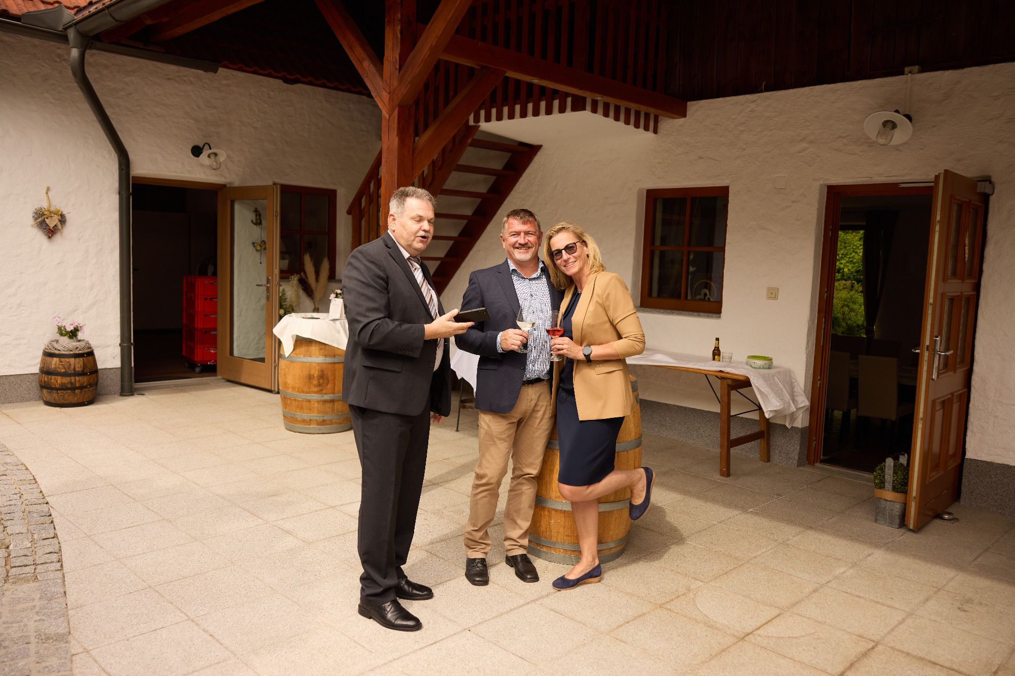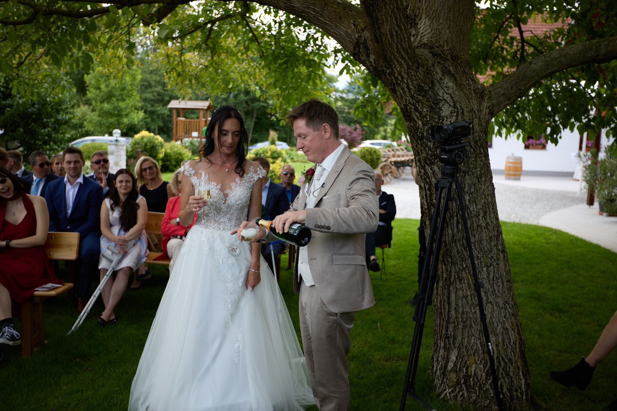 Und Bettina indem du zu mir eh beim gemeinsamen Gespräch gsogt host, dasd sicher an Schnaps brauchst vorm Eheversprechen, hobe ma denkt kimt der Sekt für dich da jetzt ganz gelegen.