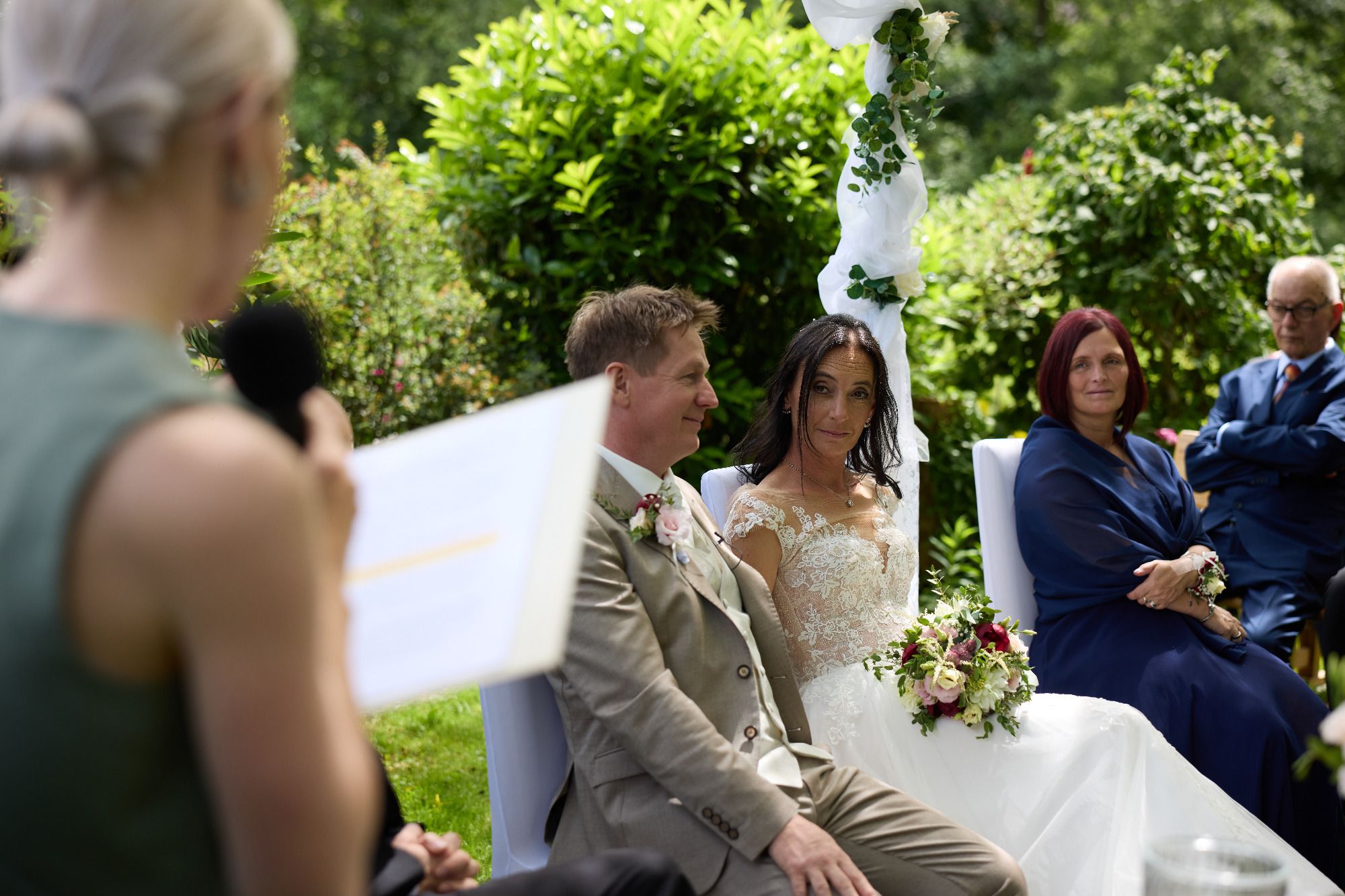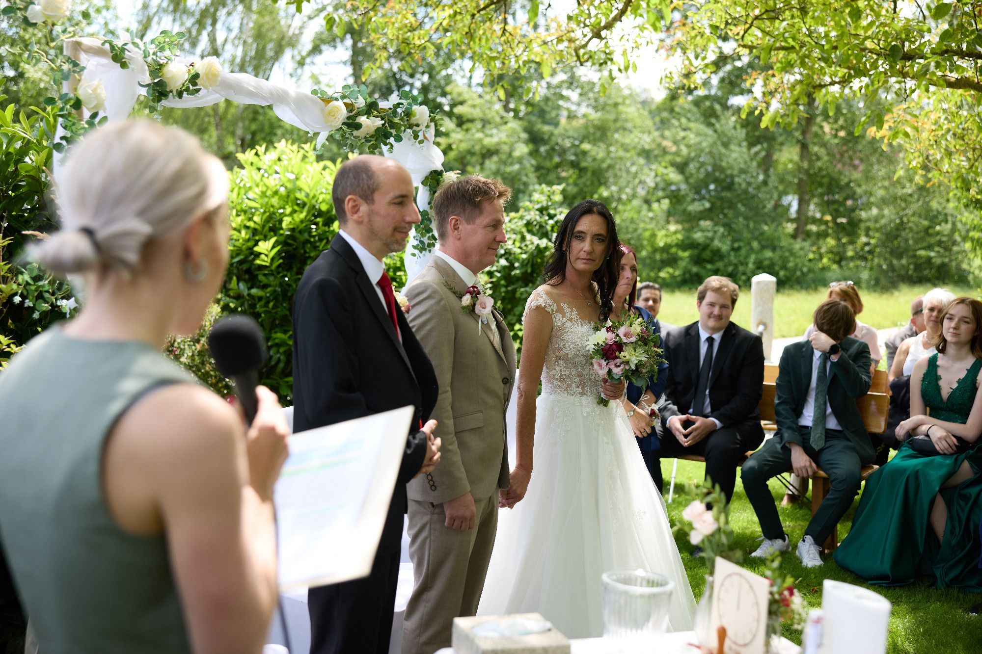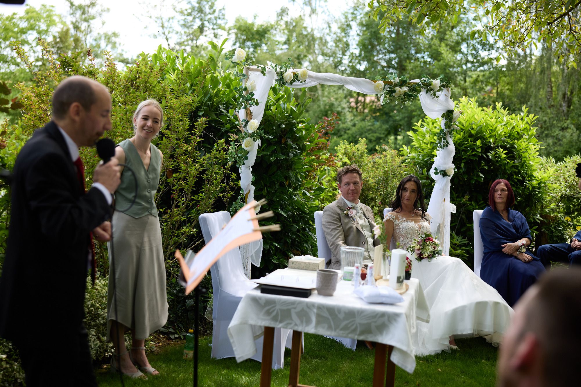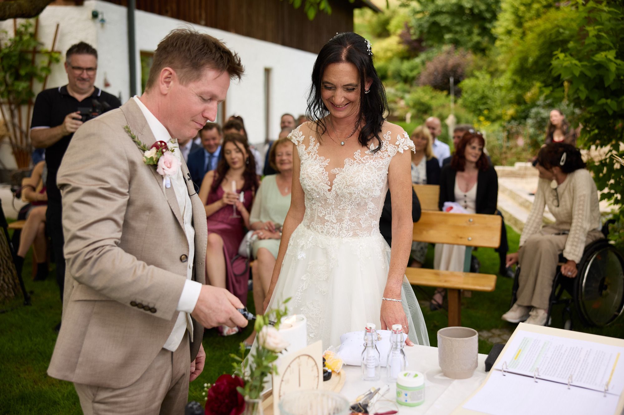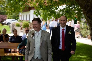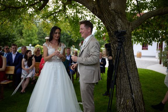 I derf mi an der Stelle ganz herzlich ba enk bedanken bei enk zwoa. Danke dass ma enka Vertrauen geschenkt habts und für die guade und lustige Vorbereitungszeit. Es woa ma a Ehre und Freid zugleich. Danke an olle Beteiligten zu der Trauung, Trauzeugen, die Vertrauten die Gästefragebögen ausgefüllt haben deafn, der tolle Fotograf, Clemens für deine tollen Überraschungen einfach olle Beteiligten.