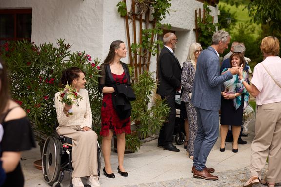 Den Tog, hobts ma es gsagt, den woits mit enkane wichtigsten Leit verbringen. Enka Liebe vor diesen Leit mit dem gemeinsamen JA heit besiegeln. Auf da Einladung habts net Ja – sondern Nein steh. Nein wir wollen nicht ohne enk heiraten. Oiso herzlich willkommen liebe Gäste, sche dass olle do seits und den bsundern Tag heut mit Bettina & Walter feierts.