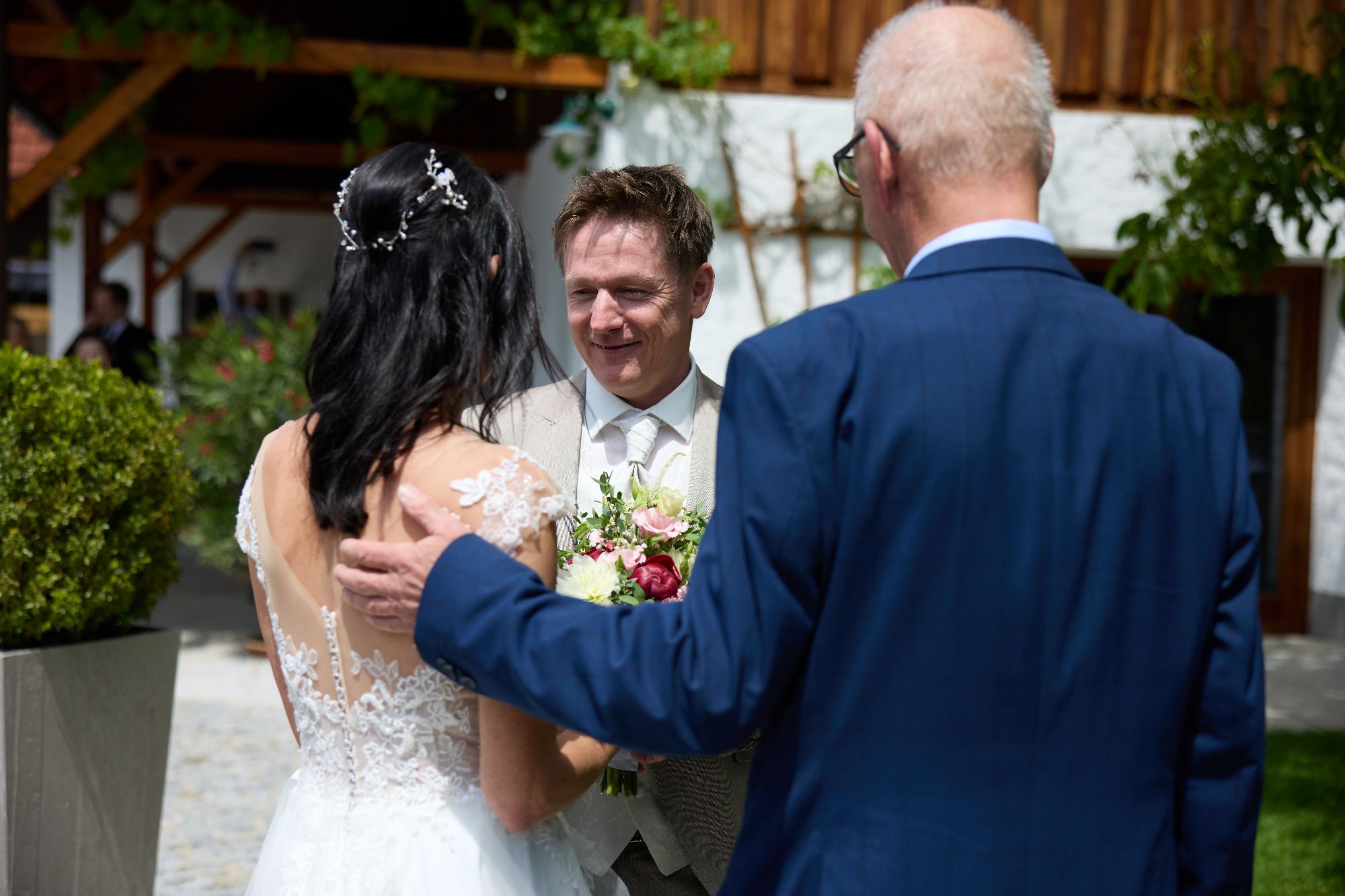 In einer gleichberechtigten Ehe sagt Jana, hat niemand die Hosen an und keiner sollte sich in ihren Eigenschaften untergraben lassen. Und i find genau des macht enk als Paar – und jetzt als Ehepaar - aus und genauso speziell. Selten habe wen erlebt, der räumlich getrennt lebt owa trotzdem so intensiv liebt wie ihr als Paar. Gleichzeitig owa akzeptierts enk genauso wies seits – und liebts genau die Gegensätzlichkeit aneinander. Außer Bettina du gibst an Walter wieder amoi des Gefühl dasd na ignorierst des bringt na auf die Palme hod a gmoant. 😉