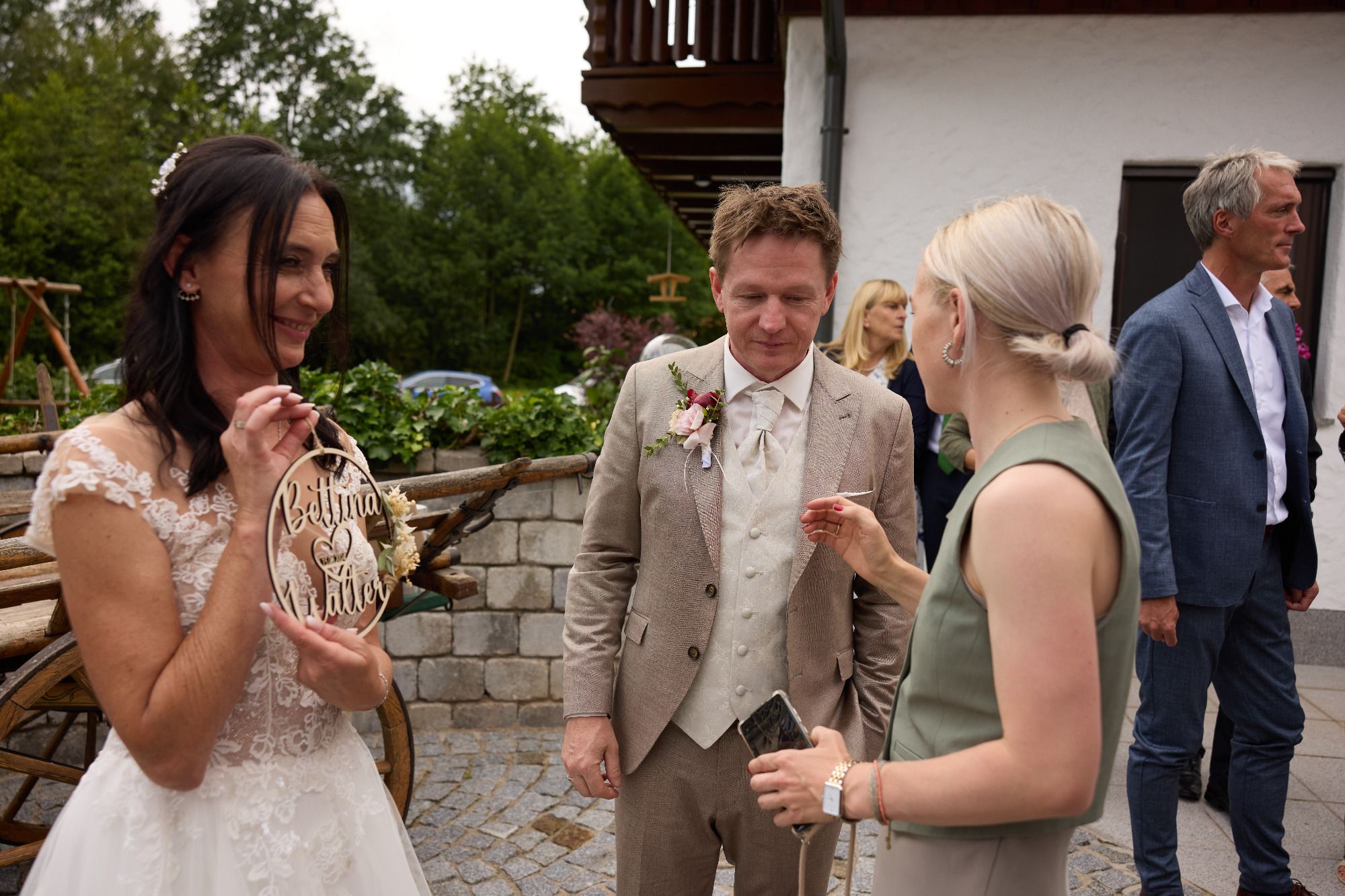 Liebe Bettina, willst du an Walter zu deinem Mann nehmen, ihn von ganzem Herzen lieben und ihn annehmen so wie er ist. Willst du ihn an Tagen an denen er wieder amoi Unruhe verbreitet wieder a bisl owa hoin, sowie ihn unterstützen in seinen nie endend wollenden Heimwerkerprojekte dann antworte mir bitte mit einem kräftigen JA.