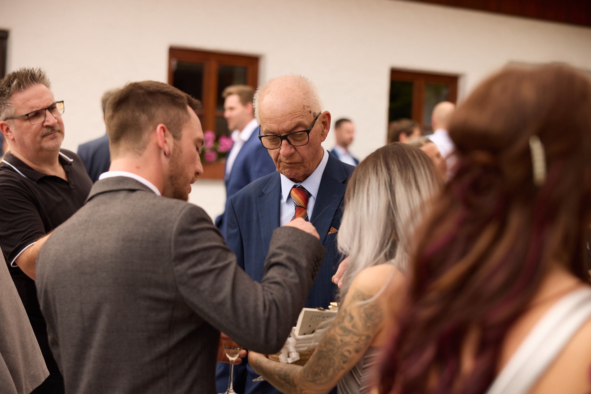 Im Namen vom Brautpaar derf i eich bitten, die Handys während der Zeremonie in de Taschen zu lassen, es is a großartiger Fotograf, do von dem ihr olle Bilder griang werds. Es soid a unvergesslicher Tog werden, deswegen is heit a wiakle (fast) alles erlaubt und sogoa erwünscht. Gfreits eich mit eana, lochts, woants, und applaudierts wenn enk danoch is.